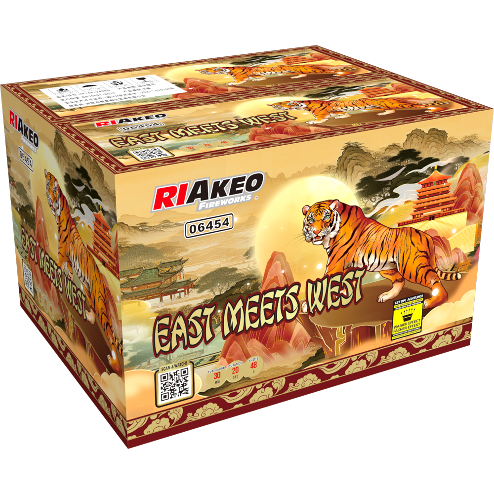 nHet oosten en westen samen in deze dikke Riakeo V-shape compound. Verblindende crackling magnesium coconuts met mixed color ejects. Meesterlijk!