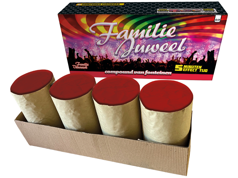 nUniek in Nederland. Een compound fontein die maar liefst 5 minuten gekleurde sterren en crackling effecten spuwt. Extra lang genieten!