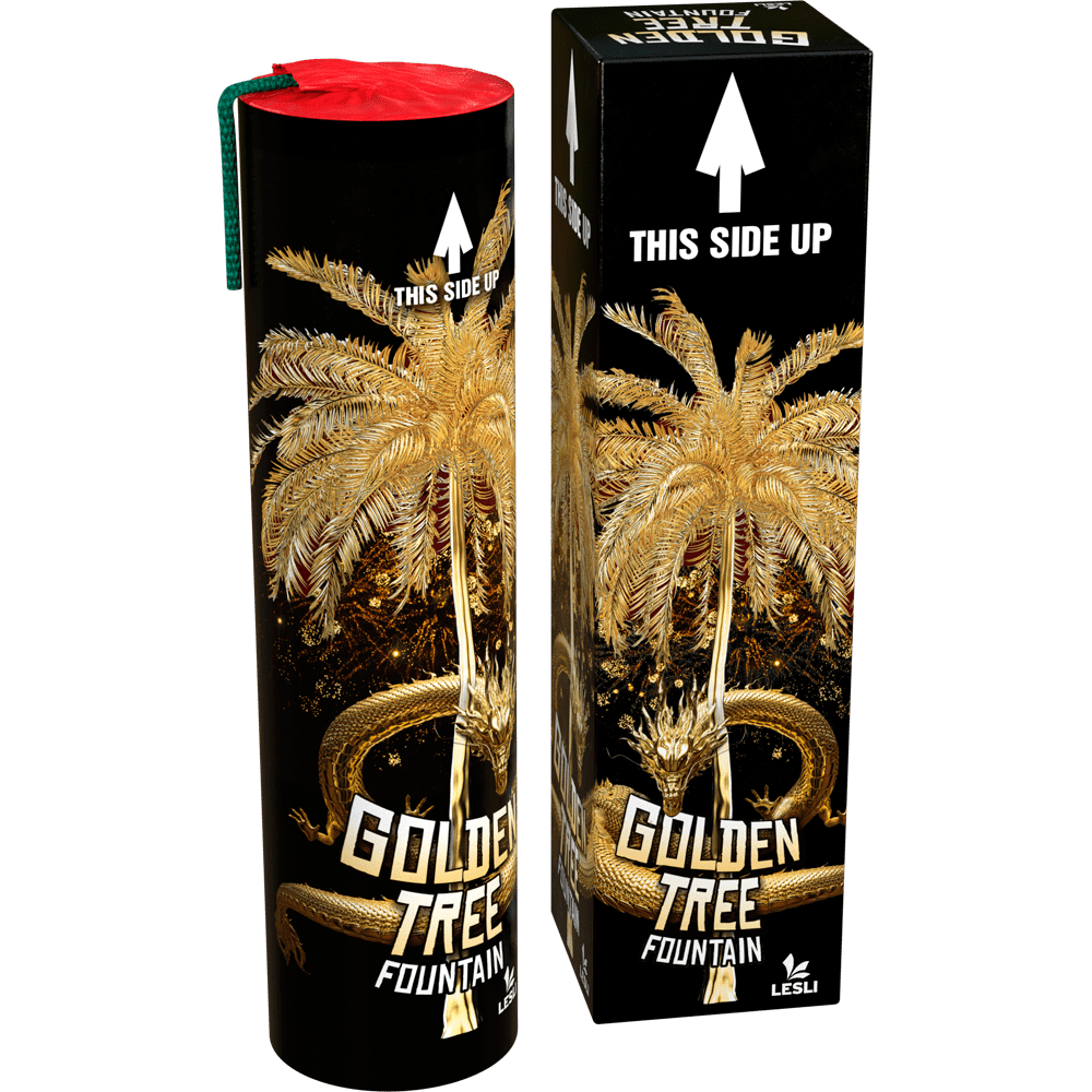 nEen prachtige diep-gouden fontein die alle aandacht opeist in de straat. Het lijkt wel een boom van goud!
