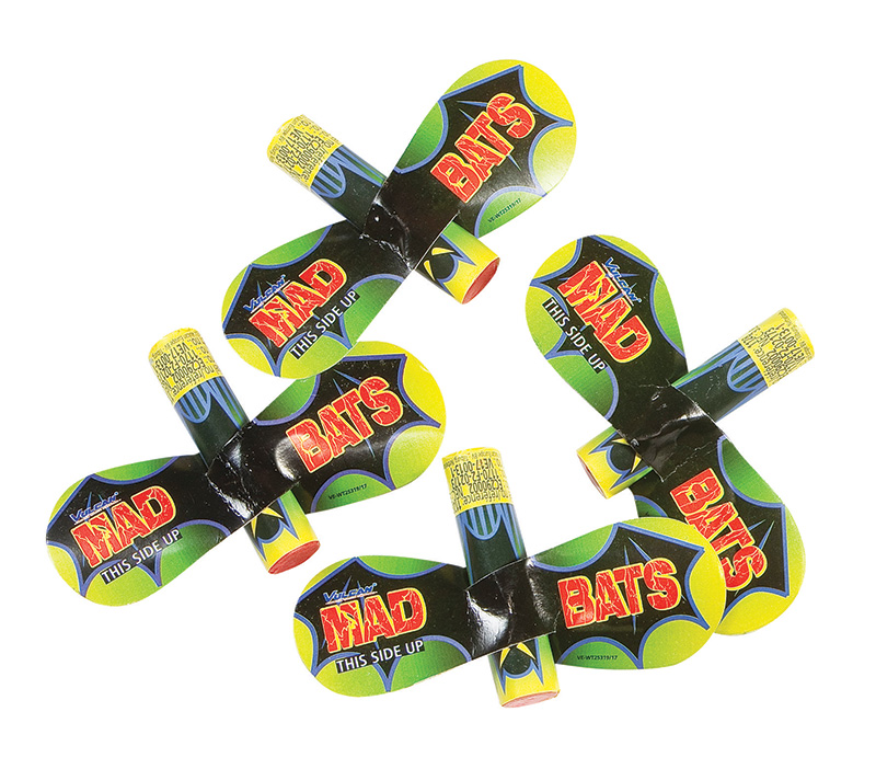 Maak je klaar voor serieus leuk vuurwerk met Mad Bats. Deze supergrote vleermuizen zorgen zeker voor wat extra spanning op je volgende feestje of evenement. Haal ze uit de doos, steek de lont aan en kijk hoe ze vliegen!