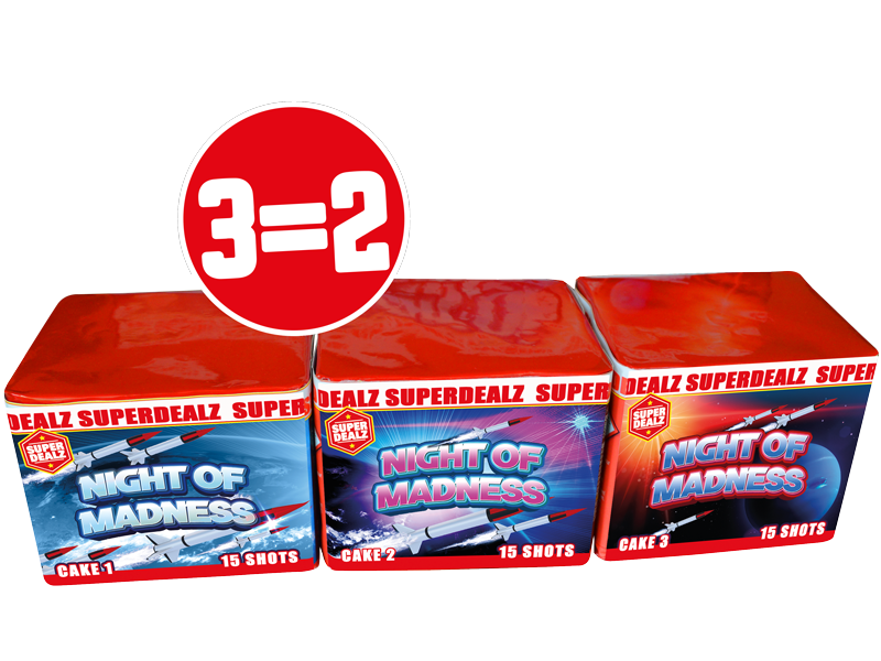 n3 compacte cakes van 15 schoten in een box gestopt. Leuk om samen af te steken!