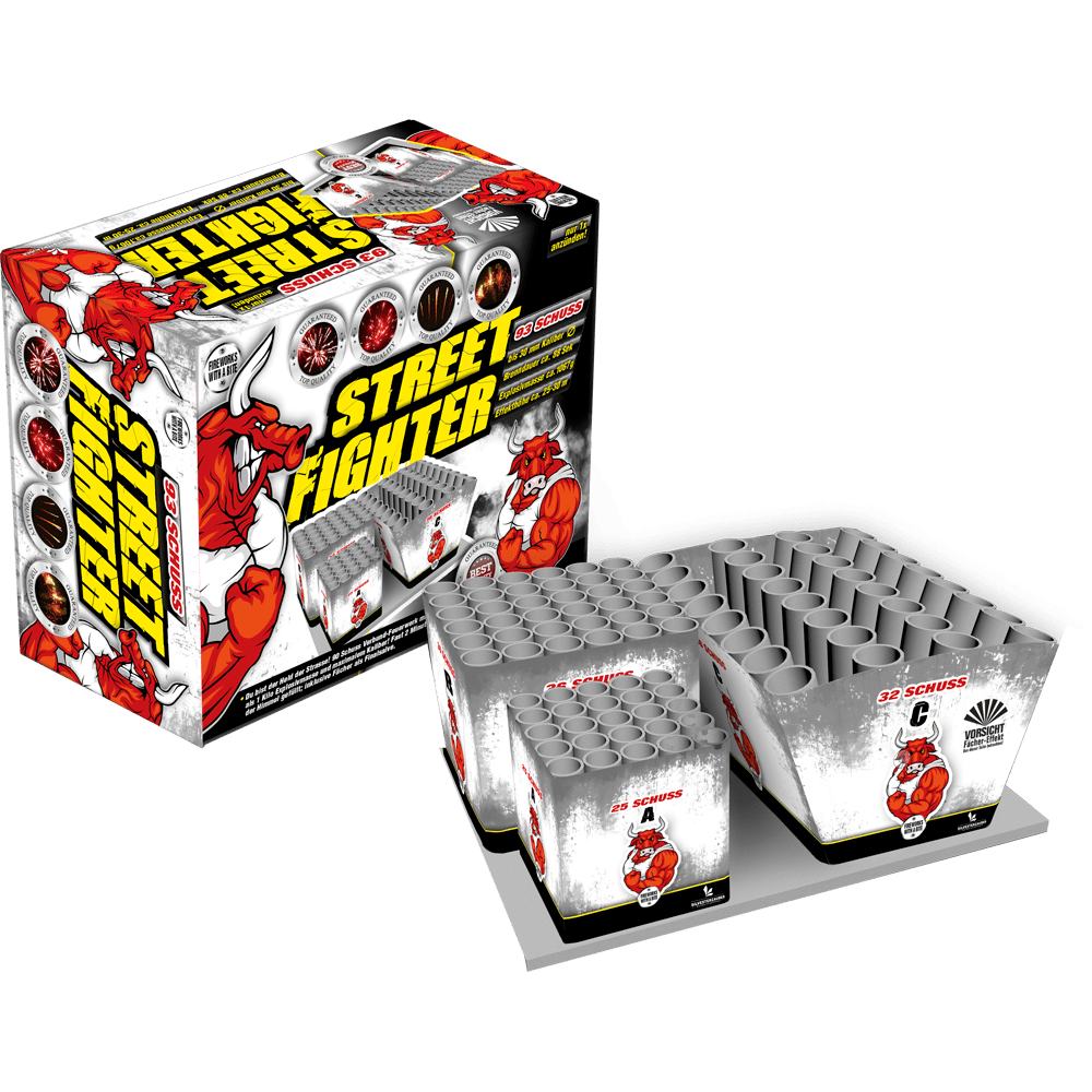 nJe bent de held van de straat! 90 schoten compound-vuurwerk met meer dan 1 kilo explosieve massa en maximaal kaliber! Bijna 2 minuten is de lucht gevuld; inclusief waaier als finale.