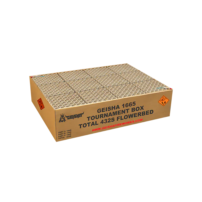 nProfessioneel flowerbed! 432 shots lang geniet jij van het gruwelijkste en heftigste vuurwerk te koop op de Nederlandse markt! In 2019 verkozen tot beste cakebox vanaf 2KG! Deze box bestaat uit drie compoundelen, in totaal 432 schoten.
