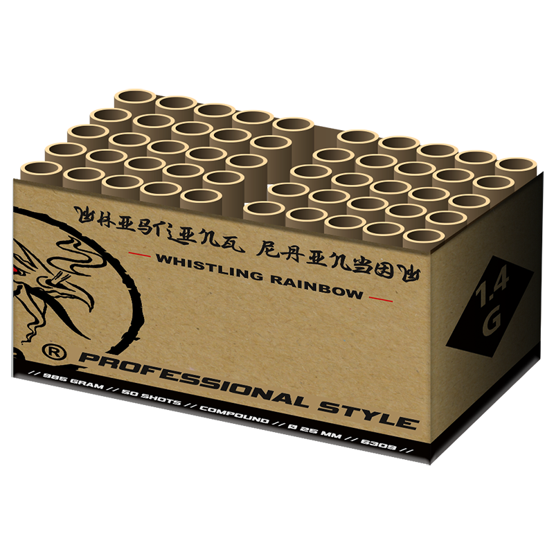 Zoals u misschien weet heeft Professional Style al faam gemaakt met de Splitting Rainbow welke speciaal voor liefhebbers ontwikkeld is. Om daar een schepje bovenop te doen heeft die gekke pyrotechnicus nu de staarten verandert in super rauwe screamers. Na hun schreeuwende vlucht naar grote hoogte ontpopt zich een mooi heldergekleurd kogeltje in de hemel. Na het schitteren van dit felgekleurde kogeltje splitst hij zichzelf op in vier kleinere lichtkogeltjes welke hun weg vervolgen. UNIEK in consumentenvuurwerk!